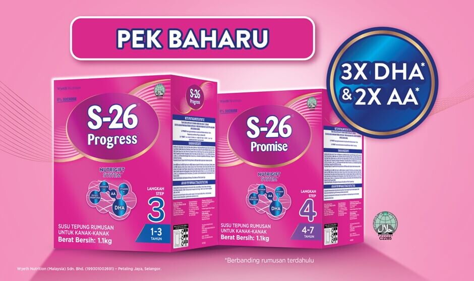 Bermula April 2025, S-26 PROGRESS Langkah 3 akan tampil dengan reka bentuk dan rumusan baharu. Namun, tiada perubahan pada saiz pek. S-26 PROGRESS kini mengandungi 3X DHA* dan 2X AA*. DHA dan AA adalah komponen penting yang banyak terdapat dalam otak. *Berbanding rumusan terdahulu.